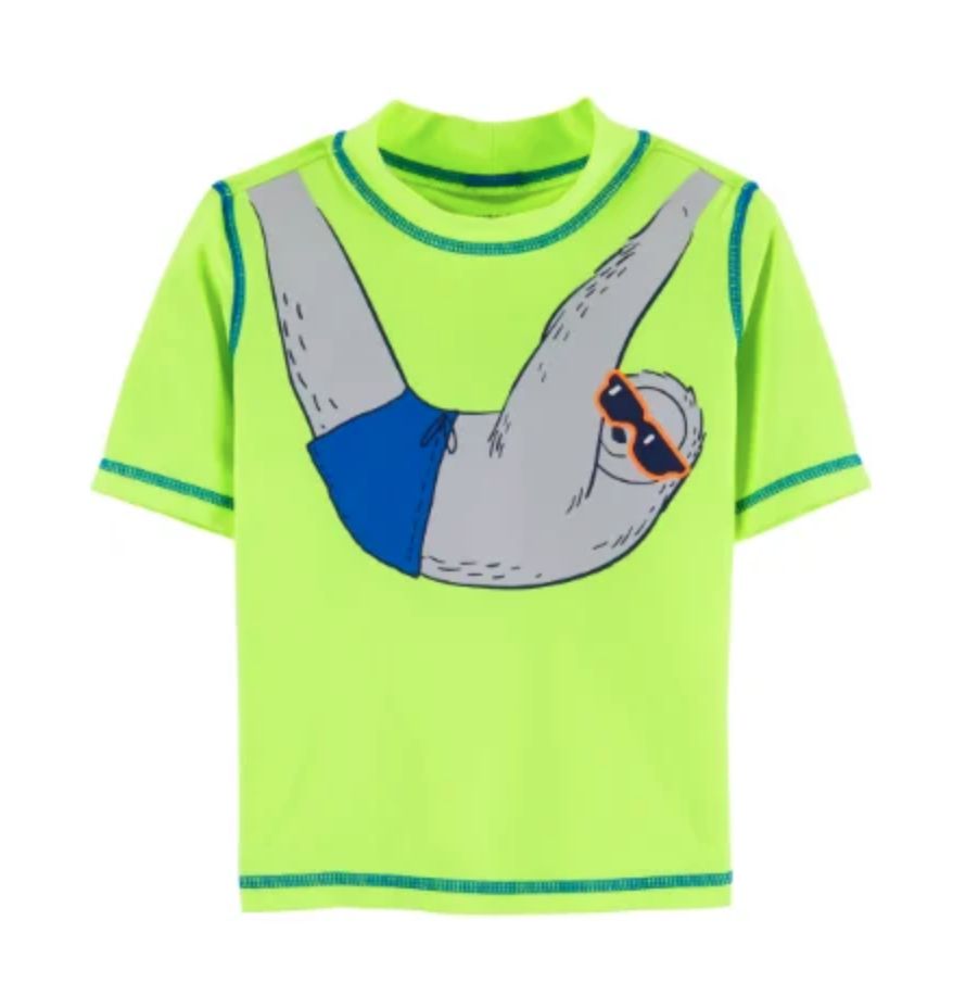 Camiseta de banho Carter's, com proteção solar UPF 50+ - Preguiça Neon