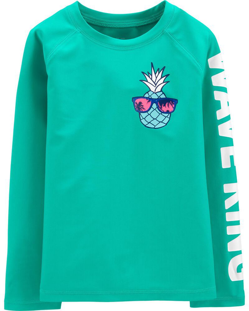 com a camiseta de banho OshKosh, os momentos na água são muito mais divertidos! O tecido possui fator de proteção solar 50+, Dessa forma, as crianças ficam protegidas contra o sol. Deixe o seu filho mergulhar nessa diversão!