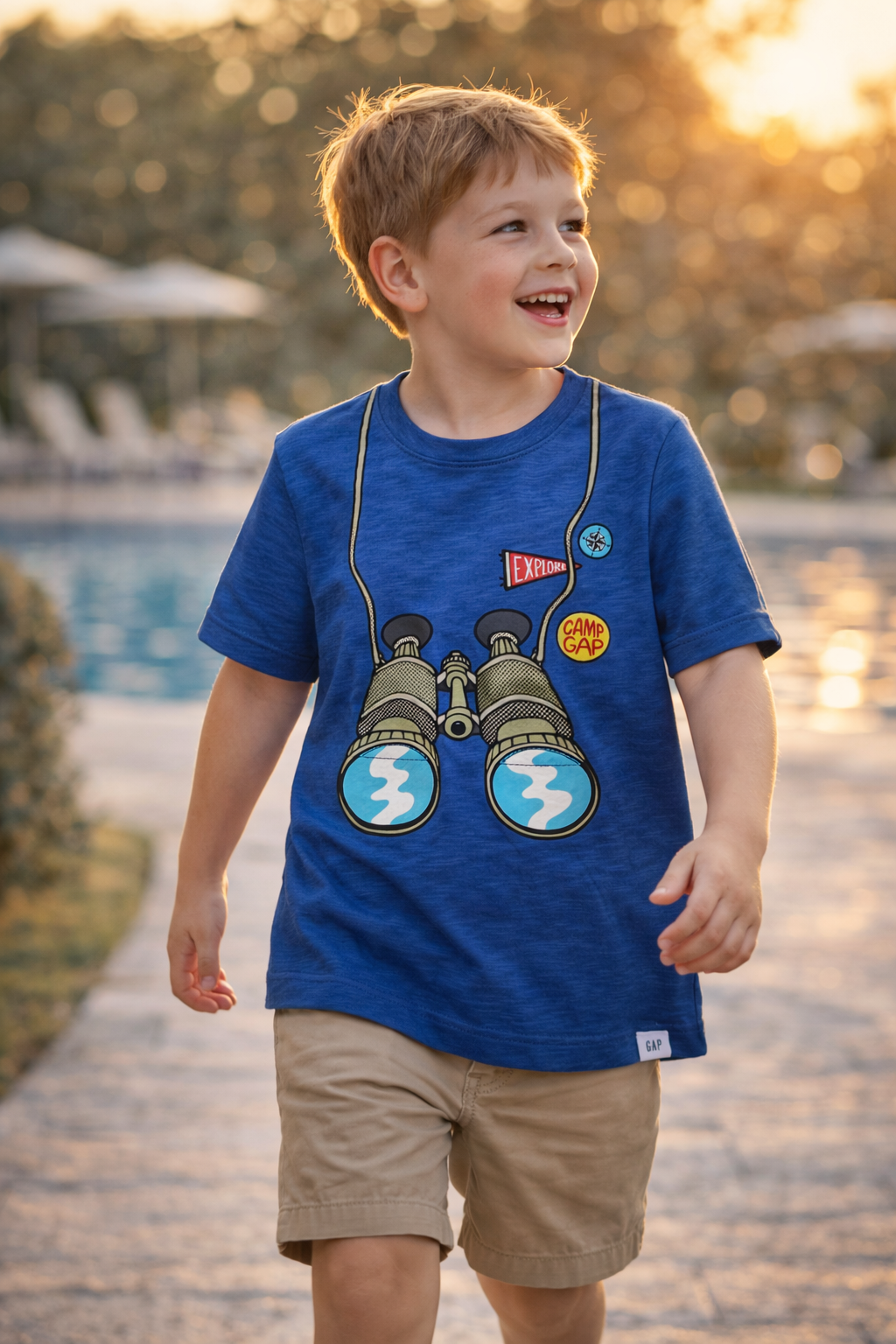 A GAP é reconhecida mundialmente pela qualidade, durabilidade e conforto de suas peças. Essa camiseta foi desenvolvida para acompanhar as crianças em todos os momentos, garantindo liberdade de movimento e estilo.