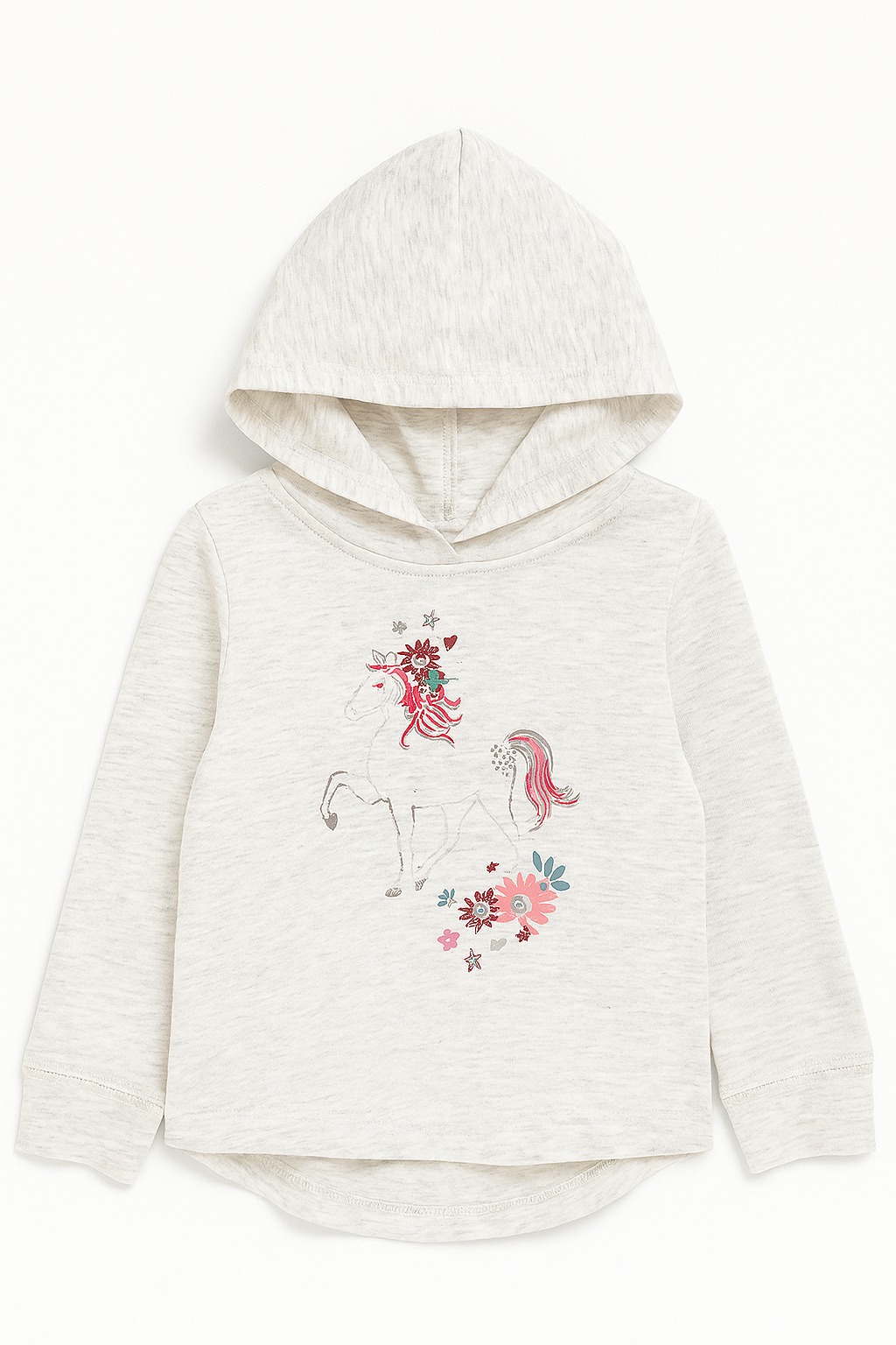 A camiseta infantil OshKosh com capuz e manga longa é perfeita para os dias mais fresquinhos. Feita com tecido macio e confortável, traz uma linda estampa de unicórnio que encanta as pequenas. O capuz protege do vento e dá um toque moderno ao look. Ideal para passeios, escola ou momentos de diversão com muito estilo e conforto. Uma peça versátil e cheia de charme que não pode faltar no guarda-roupa infantil!
