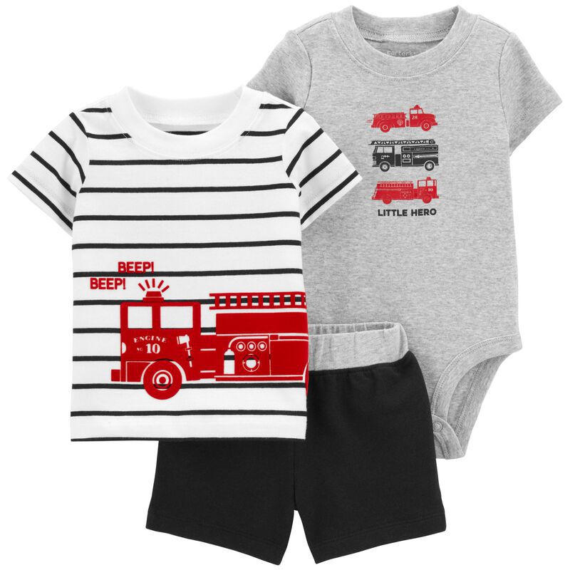 Linda camiseta em algodão macio, bodysuit e short. Perfeito para dias de calor! Seu garotão vai ficar super estiloso e confortável com esse look.