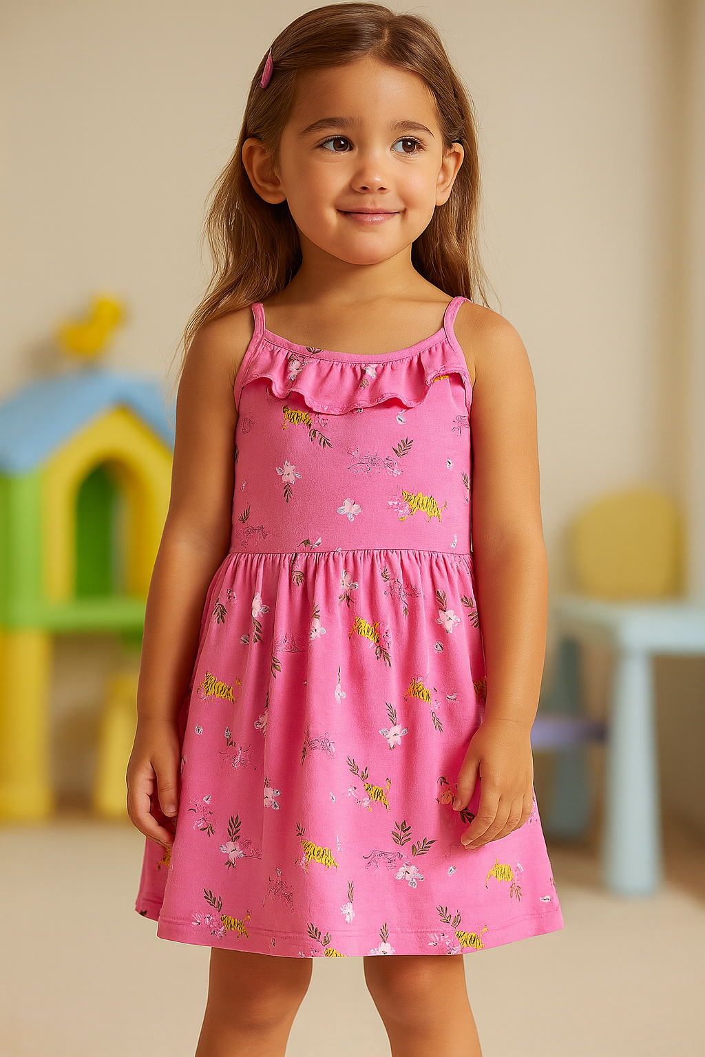 Vestido Infantil Carter’s de Verão em Alcinha, Algodão Fresquinho - Rosa/ Floresta